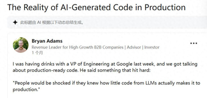 “如果大家知道 LLM 生成的代码真正进到生产里的比例有多低,一定会非常震惊。”