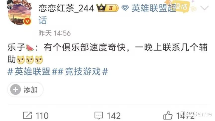 LPL德杯开赛之后,全一队首发的WBG,拿到了一胜一负的成绩,上一场比赛,微博爆冷翻车输给OMG,随后博主红茶就发文爆料:有家俱乐部,一晚上联系了几个辅助,虽然没有点名,但最近被吐槽最多的人,就是二哈,他连续两场BO3,状态都很低迷,很明显红茶说的就是WBG了。