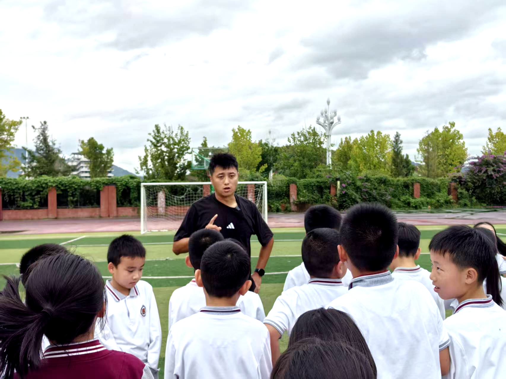 下午3点整,上课铃响起。孩子们来到足球场,列队、热身、控球、传球……张恒在一旁示范、指导,孩子们的动作不算标准,但脸上始终洋溢着笑容,这是足球带来的快乐。