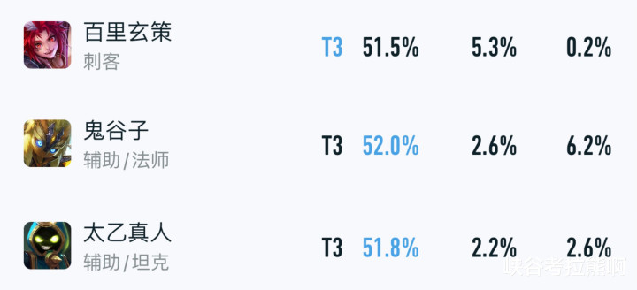 百里玄策、鬼谷子、太乙真人属于典型的强度风水岭英雄,敢拿这几位英雄上分的基本都有一定手法,本身英雄强度和数值也不低,所以胜率一直比较稳定,目前不太建议乱改,否则数值稍有偏差导致胜率降了,得不偿失吧?