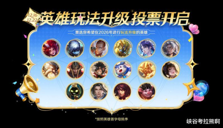 与去年不同的是今年的英雄数量从37位降到了16位,且都是2024年之前上架的出场率不足6%的英雄,投票的规则也改为了英雄熟练度达到“紫色”才可以进行相应的投票,且可以选择升级或不变。这一规则的改动确实会让结果变得更具专业感。
