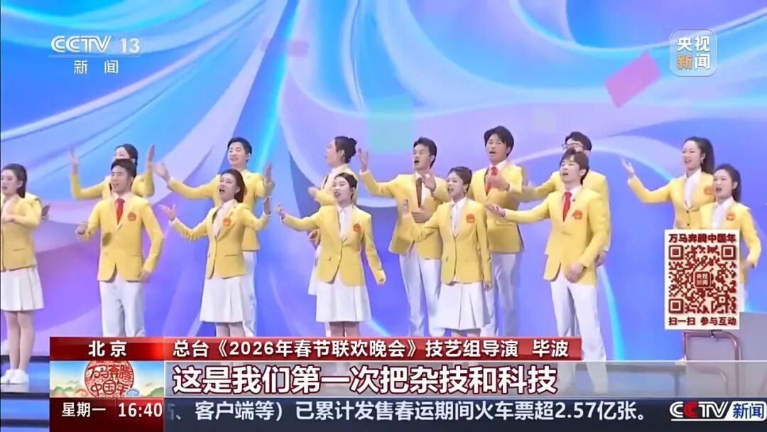 总台《2026年春节联欢晚会》技艺组导演 毕波:今年的杂技节目,这是我们第一次把杂技和科技,尤其是这样的视觉科技放在一起。所有技艺组节目的思考起点都是来自表演本身的技和艺,或者是电视转播技术上的技和艺,去深度开拓和发展的。