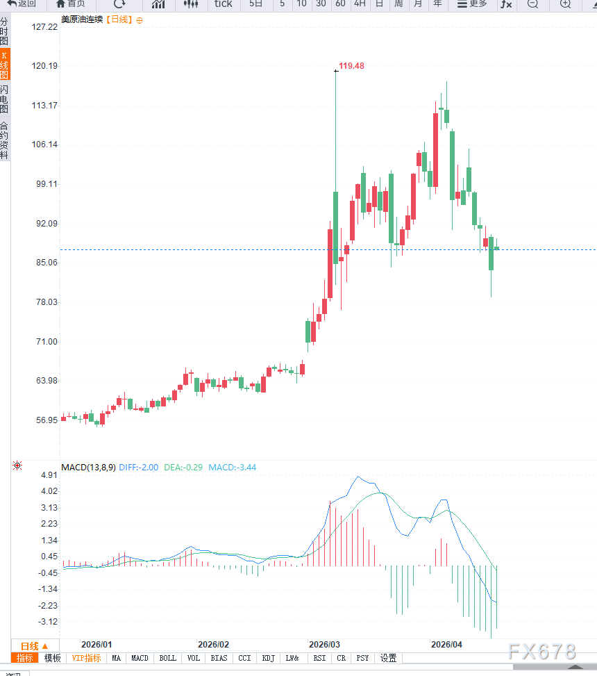 尽管价格出现强劲反弹,但值得注意的是,这一涨势并未完全收复此前跌幅。此前市场一度因霍尔木兹海峡可能恢复通航而大幅下跌,单日跌幅接近9%。这一剧烈波动表明,当前油价走势高度依赖地缘局势的快速变化,市场情绪仍在“供应中断”与“外交缓和预期”之间反复摇摆。