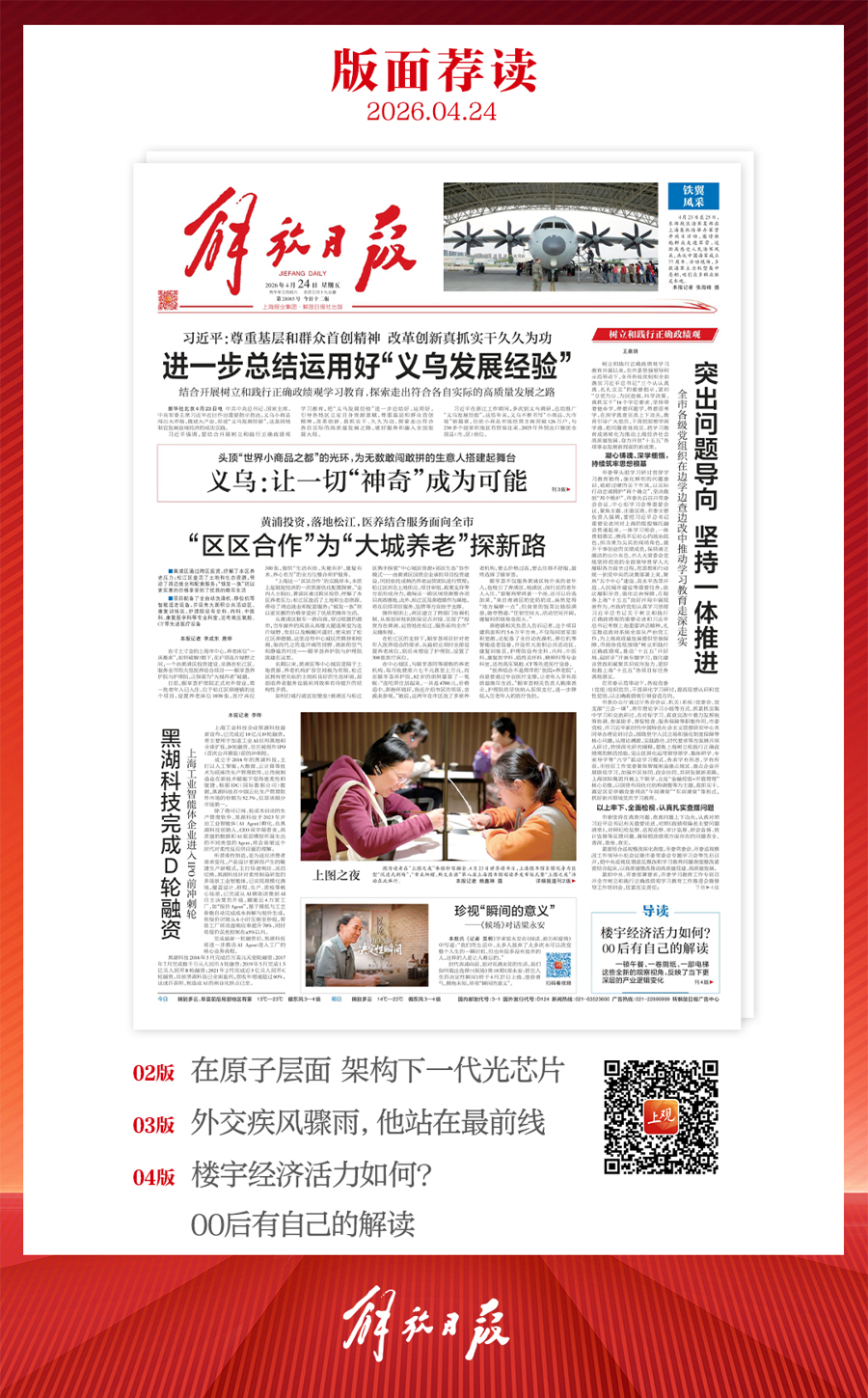 早上好!上观新闻『早读』来啦!今天是2026年4月24日星期五,农历三月初八。